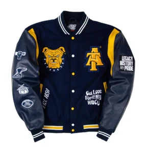 North Carolina A&T Motto 3.0 Navy & Black Wool & Leather Varsity Jacket