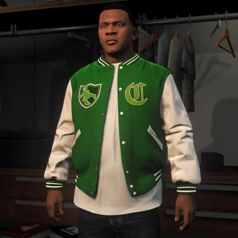 GTA 5 Franklin Adamim Green and White Varsity Jacket