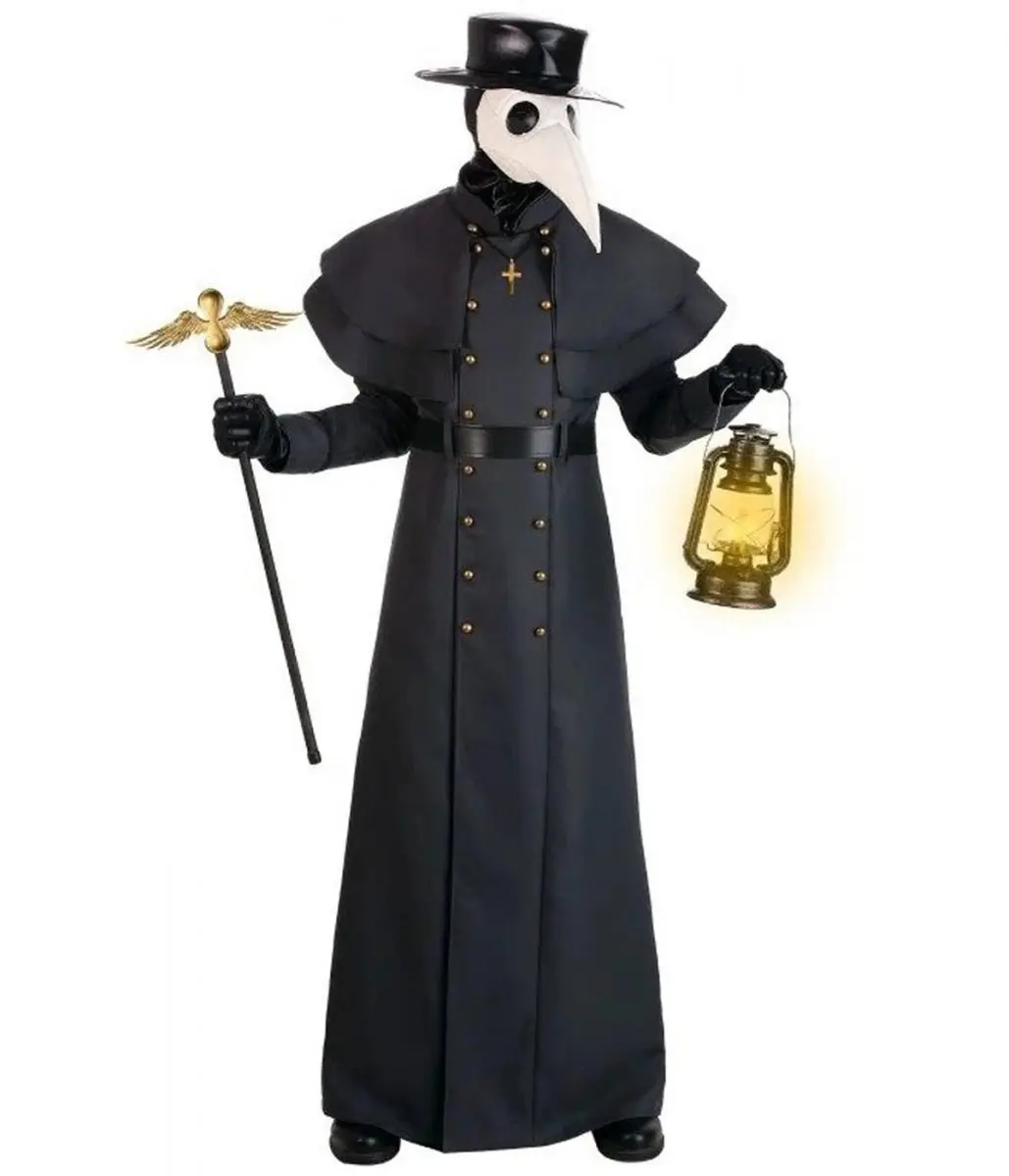 Classic Plague Doctor Halloween Black Wool Coat