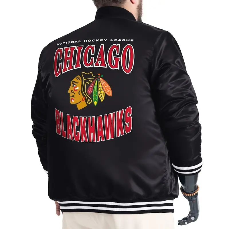 Chicago Blackhawks Adaptive Bold Logo Varsity Satin Jacket