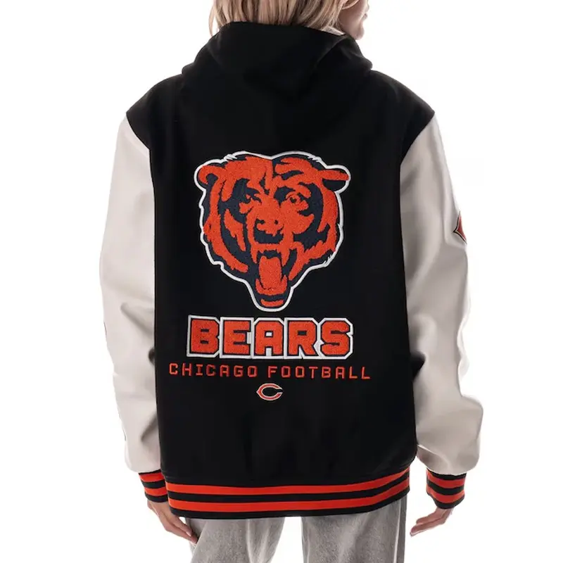 Chicago Bears Black and White Hooded Varsity Jacket
