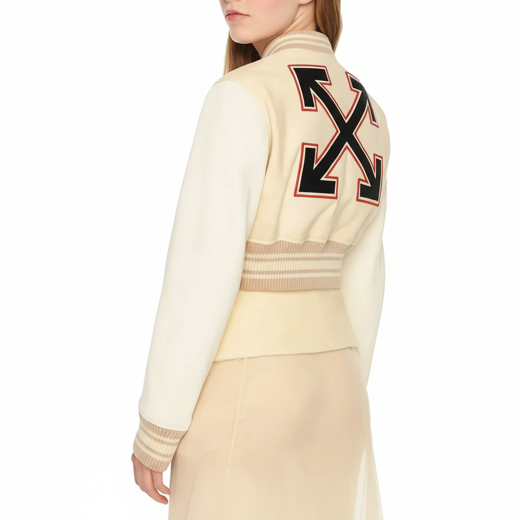 Rita Ora Elvis Duran Show Varsity Jacket – Cream Wool & Leather