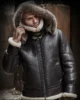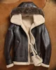 Australian Sheepskin Leather Hooded Shearling Fur B3 Parka Black Bomber Jacket