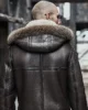 is expertly crafted from genuine leather. It is beautifully designed as Parka Bomber Jacket. The hooded, shearling fur collar style and cuffs take the jacket’s fashion game to the next level. The jacket’s interior is also insulated with shearling fur to provide extra warmth.