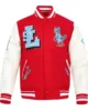 Various bold logo patches are featured on the front and back